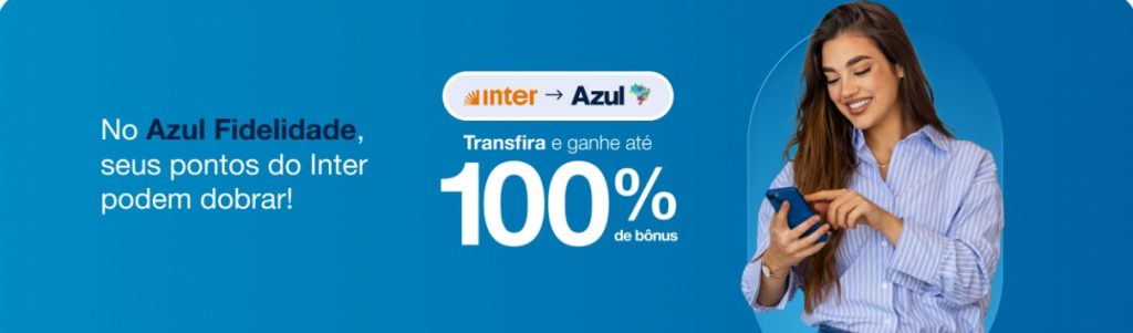 2.3 Para garantir o bônus, o cliente deve possuir cadastro no programa de fidelidade da Azul, com a conta em situação regular e também cadastrar seu CPF no link da promoção https://www.voeazul.com.br/br/pt/ofertas/inter antes de realizar a transferência.