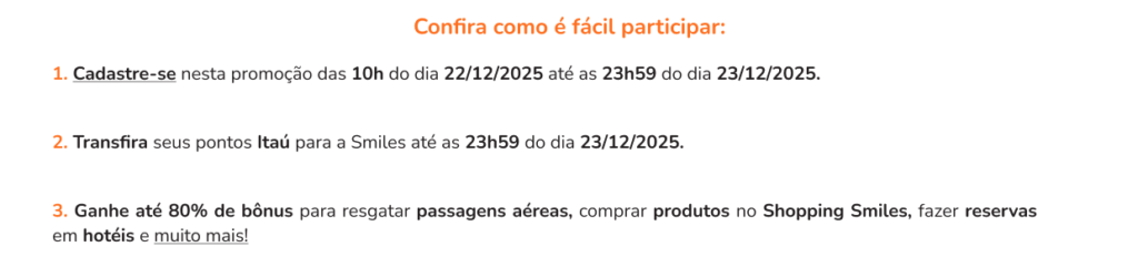 • As milhas bônus serão creditadas em sua conta Smiles até o dia 12/01/2026 e serão válidas por 12 meses;