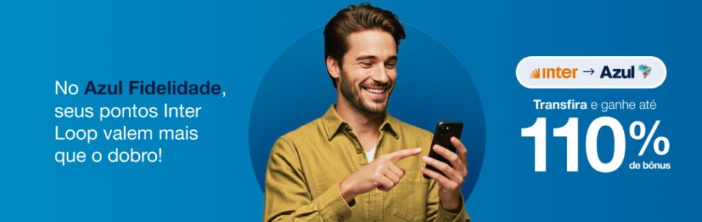 2.3 Para garantir o bônus, o cliente deve possuir cadastro no programa de fidelidade da Azul, com a conta em situação regular e também cadastrar seu CPF no link da promoção https://www.voeazul.com.br/br/pt/ofertas/inter antes de realizar a transferência.