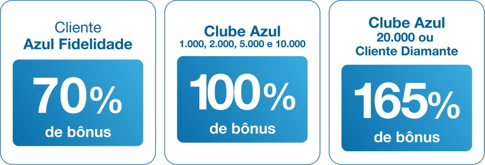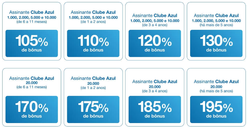 - O limite de bônus cumulativo para assinantes do Clube Azul é de 100.000 pontos por ano.