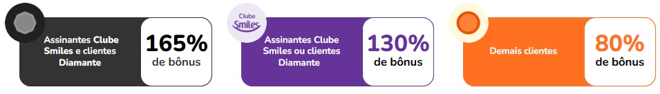 - Para ganhar o bônus máximo nessa promoção, os clientes assinantes do Clube Smiles precisam estar com a assinatura ativa antes de realizar a transferência dos pontos para a Smiles no período da promoção.