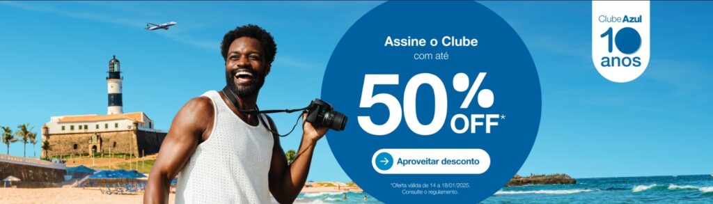 1.  A Campanha é válida no período de 14/01/2026 às 00:00 até 18/01/2026 às 23:59, horário de Brasília, e serão considerados participantes do “Programa de Fidelidade da Azul” que realizarem a adesão ao Clube Azul no período da promoção através do link promocional da Campanha de Aniversário de 10 anos do Clube Azul.