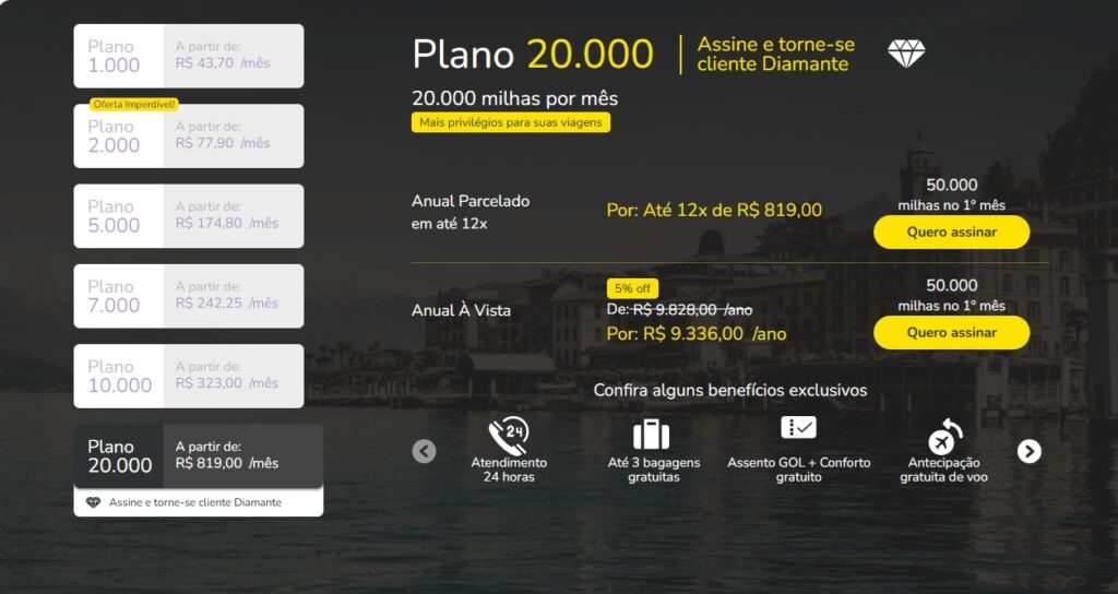 Para celebrar com a gente, preparamos uma oferta especial para você: garanta o maior bônus assinando o Plano 2.000 e junte 20.000 milhas na hora!