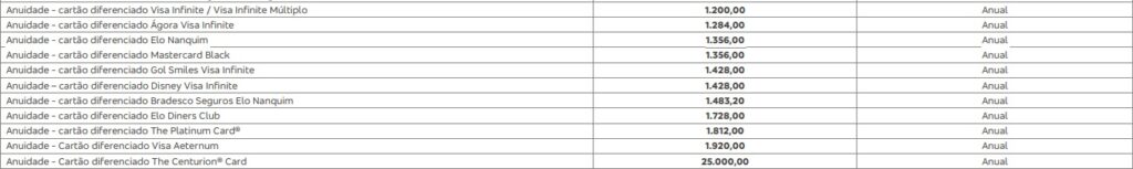 Tabela de anuidades click aqui
