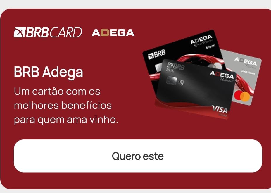 O universo dos cartões de alta renda acaba de ganhar mais um capítulo importante: o BRB já exibe em seu aplicativo o novo BRB DUX Adega, ampliando o portfólio da linha DUX, referência nacional em benefícios para clientes premium.