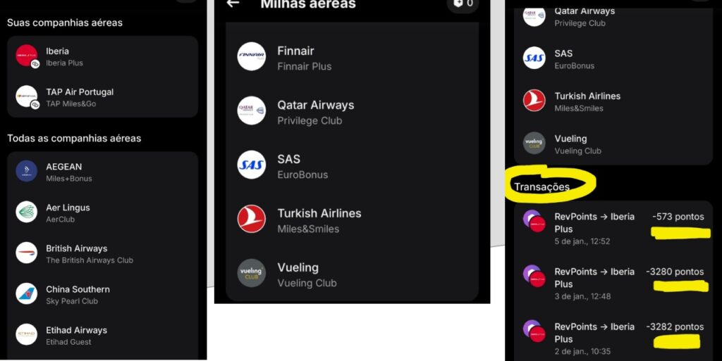 Todos os parceiros Revpoints 2026: Ibéria Plus, Tap Miles&Gol, Aegean AerClub, Aer Lingus,British Airways, China Southern, Ethad Airways, Finnair, Qatar Airways, Sas, Turkish Airlines, Vueling.