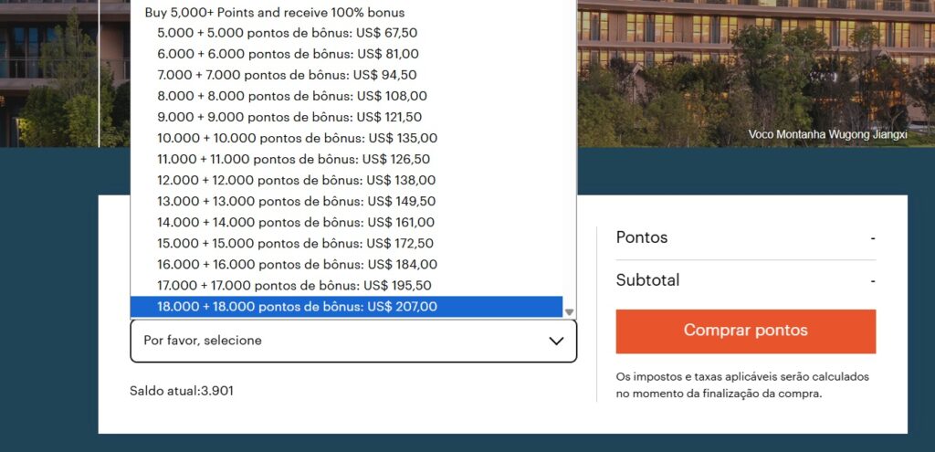 • Esta é considerada a melhor promoção histórica do programa IHG One Rewards (InterContinental, Holiday Inn, Kimpton, Six Senses). Quando o bônus atinge 100%, você está essencialmente comprando pontos pela metade do preço, o que abre portas para hospedagens de luxo por uma fração do valor da tarifa em dinheiro.