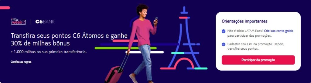 Importante: Ative a promoção antes de transferir seus C6 Átomos para garantir as milhas bônus.
