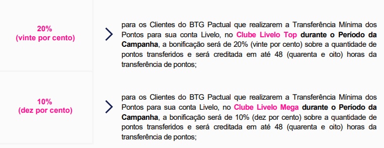 Bonificação para Clientes do BTG Pactual em Transferência de Pontos para a Conta Livelo nos