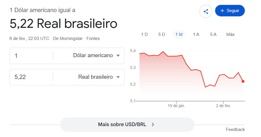 O dólar hoje, sábado, 7 de fevereiro de 2026, confirma o movimento de “queda livre” que começou na última terça-feira, consolidando-se em R$ 5,22 no fechamento do mercado comercial. No padrão Leandro Vieira, quando o mercado físico está fechado (fim de semana), o foco total se volta para as contas globais, que permitem travar essa cotação antes da abertura de segunda-feira.