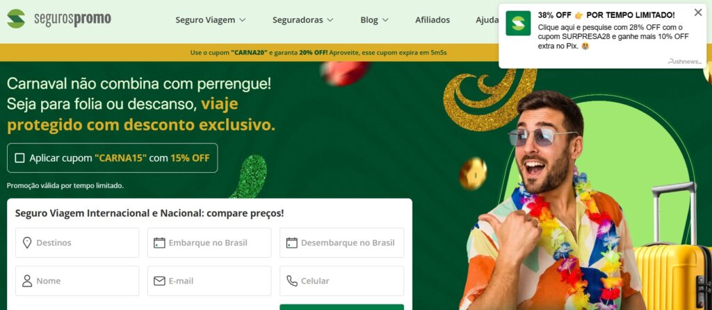 [EXCLUSIVO] Desconto de Carnaval para seu seguro viagem! ATÉ 38% DE DESCONTO