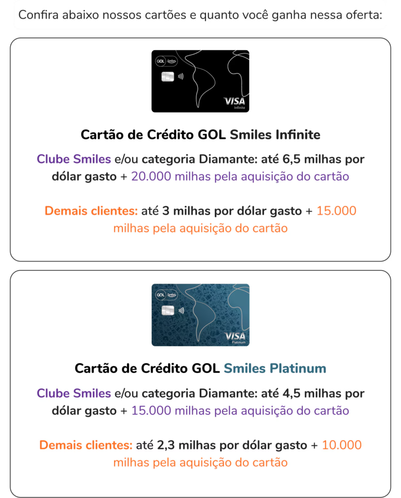 - As milhas pela aquisição são um benefício natural do Cartão de Crédito GOL Smiles. Consulte as regras com o Banco emissor.