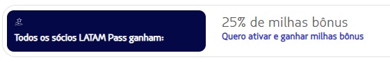 Campanha de 25% milhas bônus valida para todos os sócios LATAM Pass.
