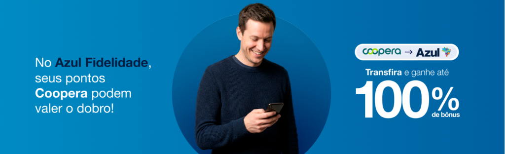 2.3 Para garantir o bônus, o cliente deve possuir cadastro no programa de fidelidade da Azul, com a conta em situação regular e também cadastrar seu CPF no link da promoção https://www.voeazul.com.br/br/pt/ofertas/coopera antes de realizar a transferência.