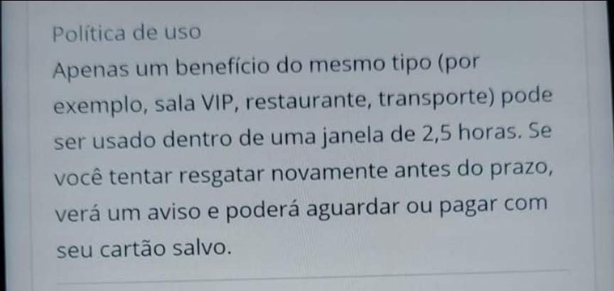 1. Conexões Curtas: Se você acessar a sala VIP em Guarulhos antes de embarcar e tiver uma conexão de 2 horas em outro lounge, ao tentar acessar o sala vi, o seu cartão poderá ser recusado por estar dentro da janela de 2h5 horas.