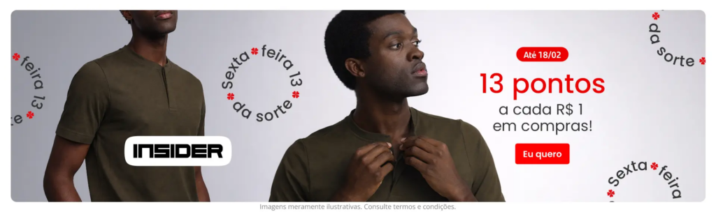 * Ganhe 13 pontos a cada R$ 1,00 em compras no site parceiro