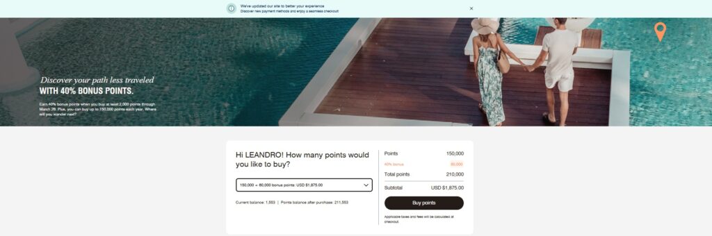 • Novas Contas: Se você criou sua conta no Marriott Bonvoy agora, precisa esperar 30 dias para poder comprar pontos.