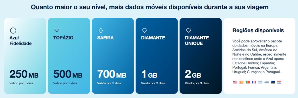 - O que recebe: Geralmente, a Azul oferece um voucher ou link exclusivo para ativação de um pacote de dados (variando entre 1GB a 5GB ou períodos de 7 a 15 dias) para uso em mais de 160 países (incluindo o Japão!).