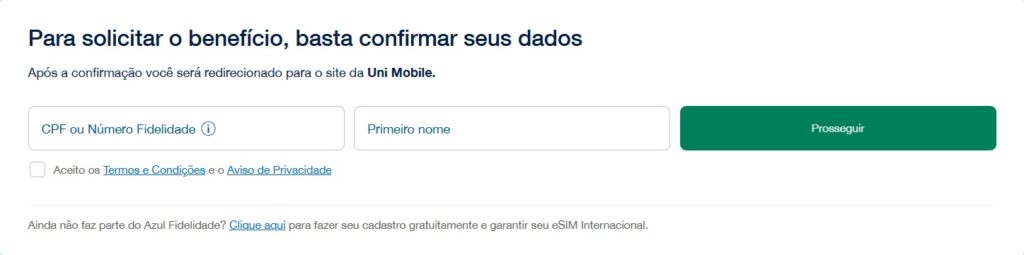Confirme seus dados para solicitar o benefício e ser direcionado ao site da Uni Mobile.