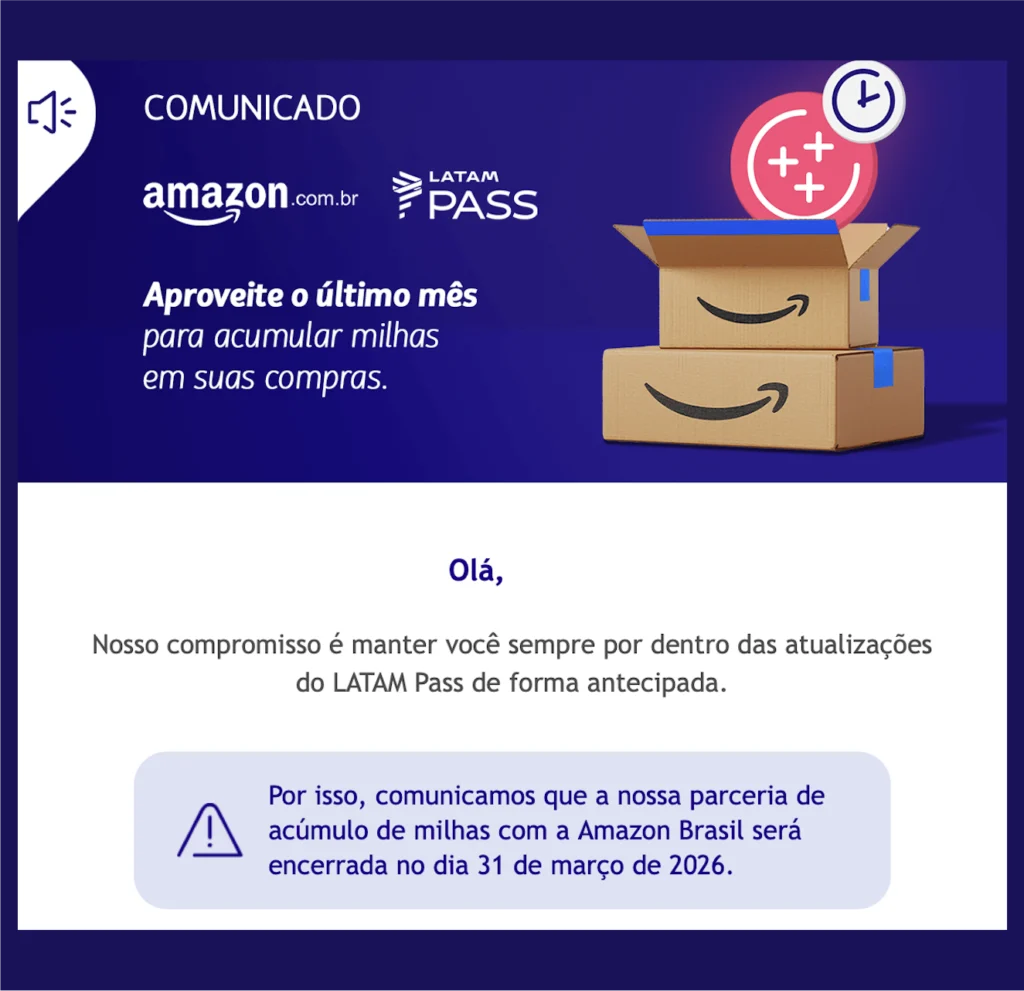 O fim da parceria representa uma mudança relevante para quem utilizava a Amazon como estratégia de geração de milhas.