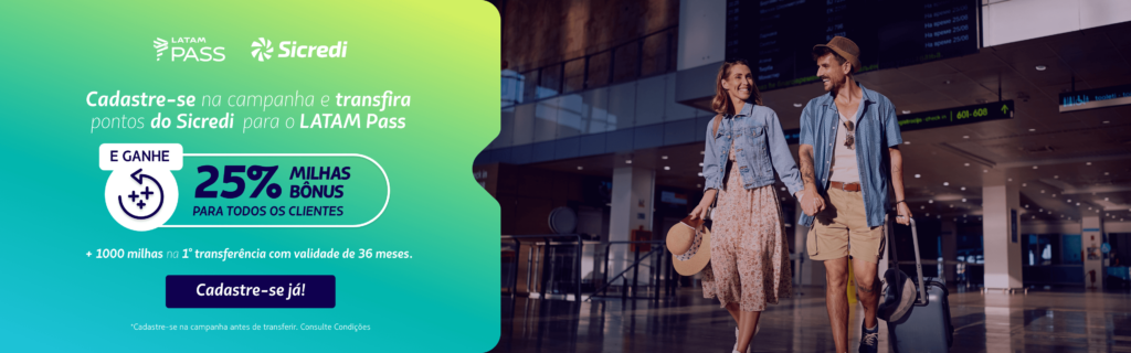 • Todas as pessoas que transferirem pontos do Sicredi para o LATAM Pass no período recebem até 25% de milhas bônus.