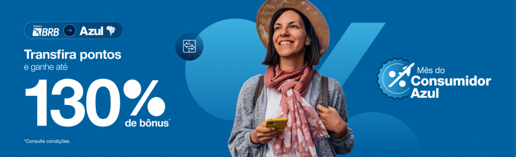 2.3 Para garantir o bônus, o cliente deve possuir cadastro no programa de fidelidade da Azul, com a conta em situação regular e também cadastrar seu CPF no link da promoção https://www.voeazul.com.br/br/pt/ofertas/brb antes de realizar a transferência.