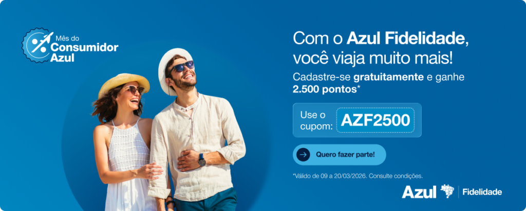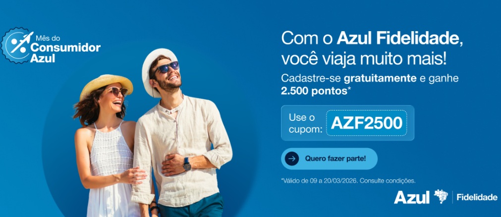 1. Oferta válida exclusivamente no dia 09/03/2026 a 20/03/2026 para novos clientes Azul Fidelidade.