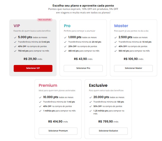 Dica: Como o bônus é pago em 12 meses, você precisa manter o clube ativo por todo esse período para receber o montante total de 80.000 pontos.
