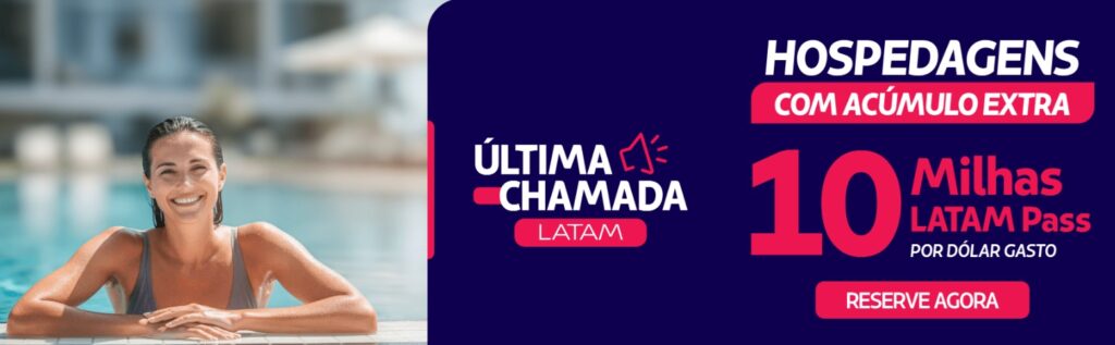 A “Última Chamada” da LATAM Pass em parceria com o Booking.com é uma das ofertas de hospedagem mais fortes deste mês, permitindo que você turbine seu saldo de milhas e sua qualificação para o próximo nível de status no programa.