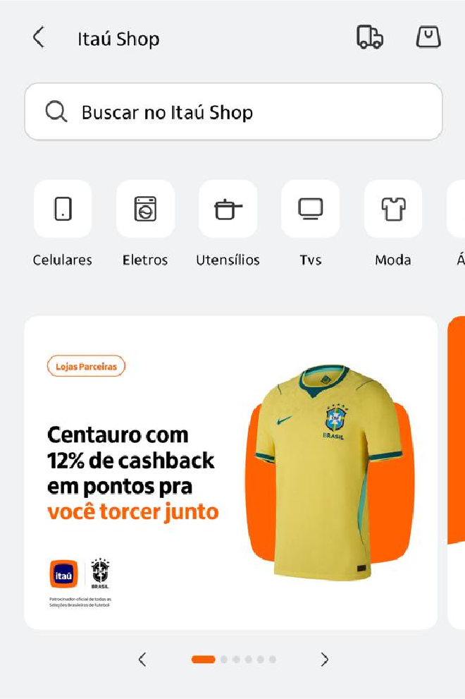 Aplicativo atualizadoAcesso ao Itaú Shop dentro do app