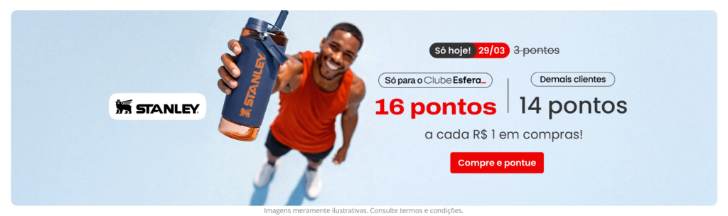 Só Hoje 29/01! 16 pontos a cada R$ 1 em produtos Stanley com Esfera