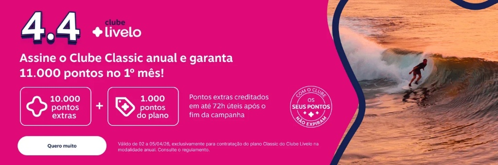 - Pontos que não expiram: Uma das principais vantagens desta adesão é que os pontos acumulados via Clube Livelo não expiram enquanto a assinatura estiver ativa.