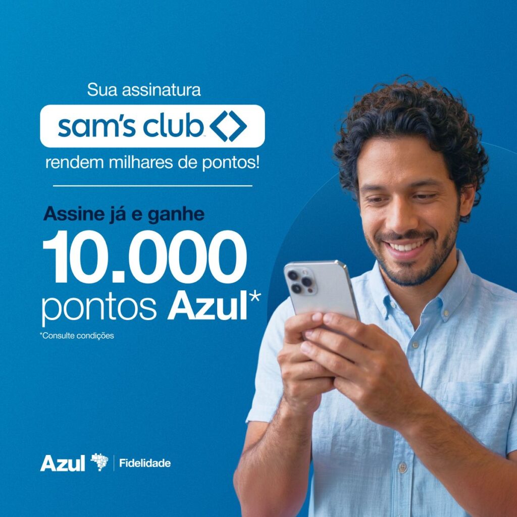 • Elegibilidade: A oferta é válida para novos sócios do Sam’s Club que realizarem o cadastro e pagamento da anuidade conforme as condições do programa Azul Fidelidade.