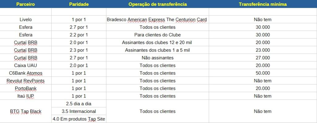 💡Parceiros de transferência no Brasil para Tap Miles&Go