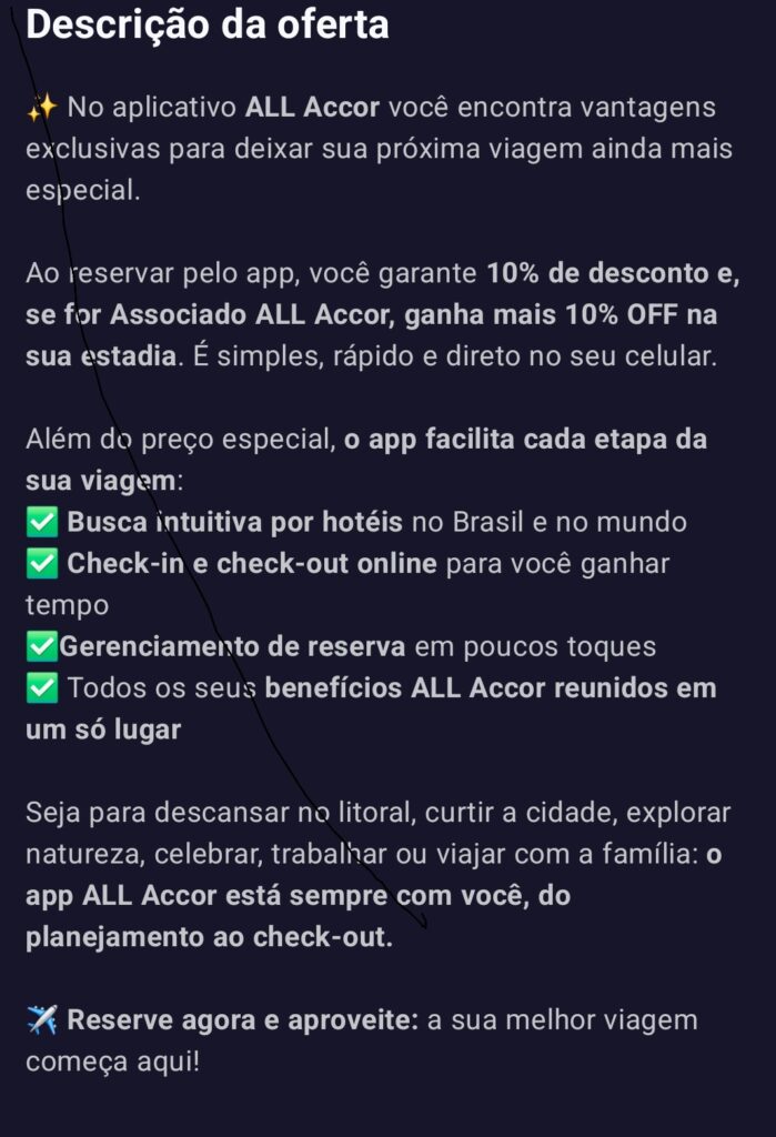 A promoção ALL Accor para reservas pelo aplicativo oferece benefícios cumulativos que podem chegar a 20% de desconto para membros do programa de fidelidade.