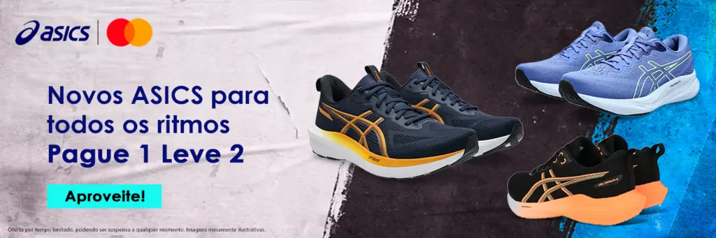 Compre um tênis Asics e ganhe outro! A gratuidade é aplicada ao produto de menor ou igual valor. Oferta válida somente para compras feitas no site exclusivo da oferta Pague 1 Leve 2 até 31/12/2026 ou enquanto durarem os estoques. Oferta não é válida em lojas físicas. Atenção: verifique a numeração do tênis escolhido antes de finalizar sua compra.