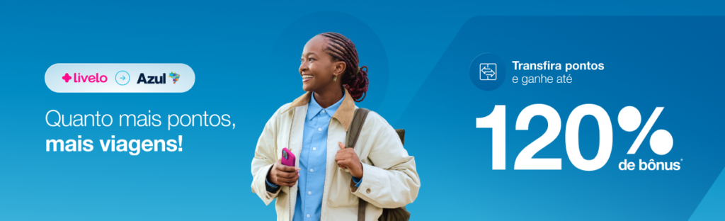 2.3 Para garantir o bônus, o cliente deve possuir cadastro no programa de fidelidade da Azul, com a conta em situação regular e também cadastrar seu CPF no link da promoção https://www.voeazul.com.br/br/pt/ofertas/livelo antes de realizar a transferência.