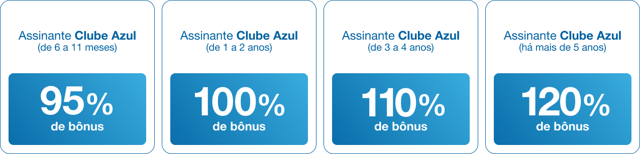 7.1. Bonificações para assinantes Clube Azul com adesão na data da transferência, poderão receber a bonificação pertinente ao produto em data diferente do restante do bônus.