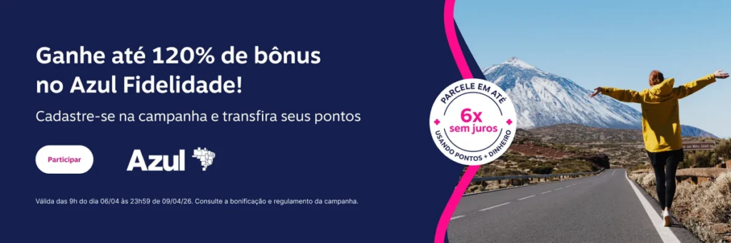 Barueri, 06 de abril de 2026 – A Livelo, maior e mais completo ecossistema de engajamento do Brasil, anuncia uma oferta especial em parceria com a Azul. Até quinta-feira (09/04), os clientes poderão ganhar até 120% de bônus ao transferir seus pontos para o programa Azul Fidelidade.