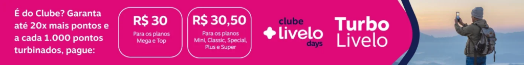 A campanha Turbo Livelo Days permite que você multiplique os pontos acumulados nos últimos 12 meses (através de parceiros, cartões ou transferências) com valores promocionais por tempo limitado.