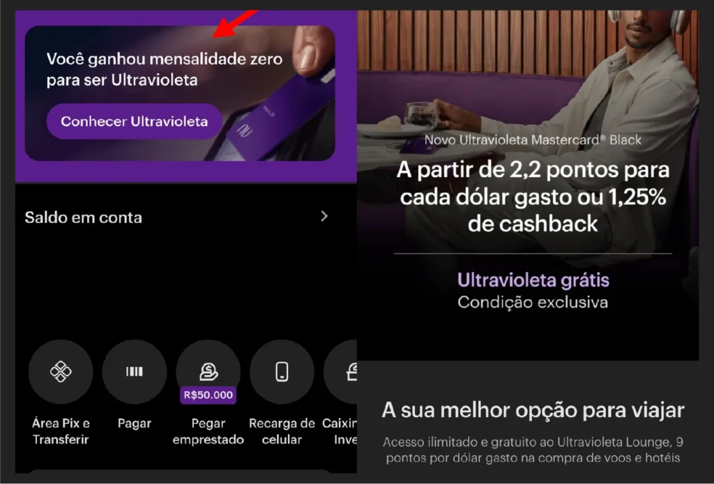 O Ultravioleta é hoje o principal cartão premium do Nubank, com foco em cashback inteligente e experiências de viagem.