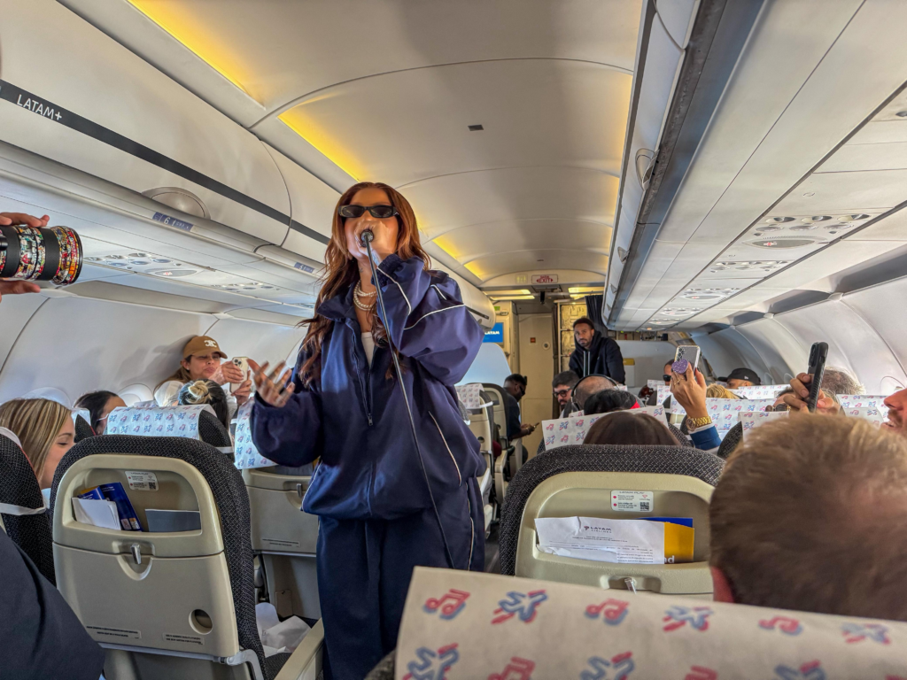 Ludmilla realizou pocket show em voo de ponte aérea da LATAM nesta segunda, 1/9 (Divulgação LATAM)