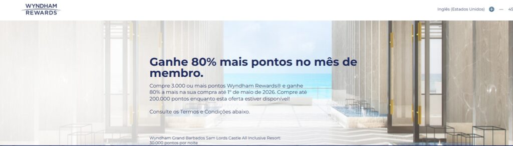 - Exemplo de Valor: O resort Wyndham Grand Barbados Sam Lords Castle (All Inclusive) custa 30.000 pontos por noite. Com o bônus de 100%, essa diária sairia por US$ 195,00 (preço de compra dos 30k pontos), frequentemente muito abaixo da tarifa pagante em dinheiro.