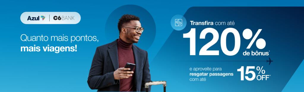 Transfira os pontos do C6Bank para Azul com até 120% de Bônus