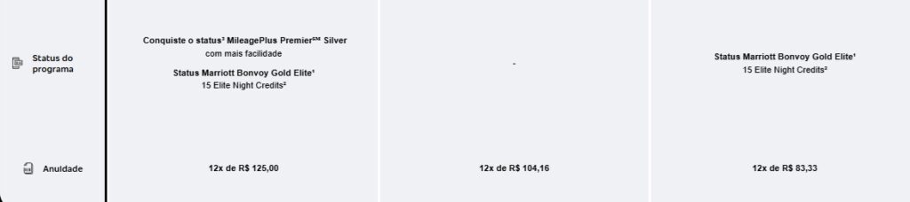 - Composição: 10 mil de aquisição + 5 mil de lançamento (United) e 10 mil de aquisição + 15 mil de lançamento (Marriott).