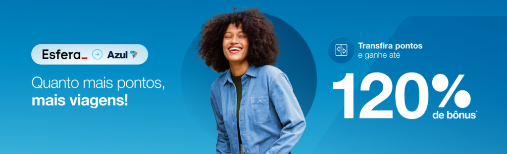 2.3 Para garantir o bônus, o cliente deve possuir cadastro no programa de fidelidade da Azul, com a conta em situação regular e também cadastrar seu CPF no link da promoção https://www.voeazul.com.br/br/pt/ofertas/esfera antes de realizar a transferência.