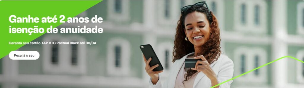 Garanta já seu Cartão TAP BTG Pactual Black. Aproveite nossa oferta só até 30/04 e beneficie-se de até 2 anos sem anuidade.