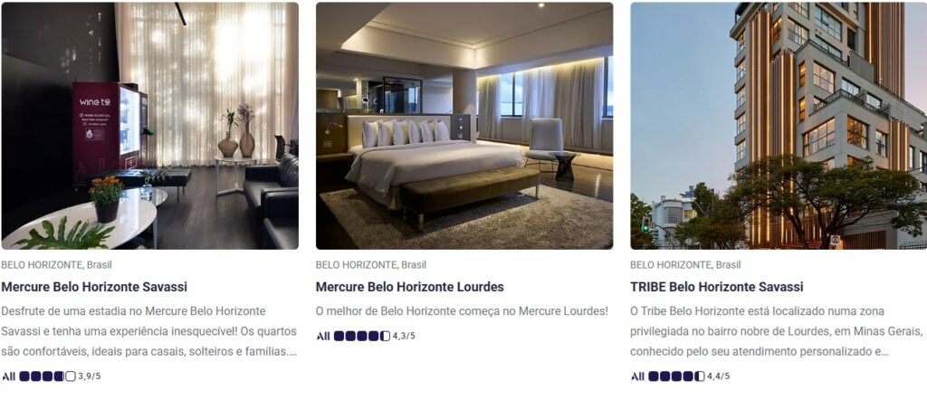 • Mercure Belo Horizonte Lourdes: Unidade localizada no tradicional bairro de Lourdes, com foco na experiência regional.