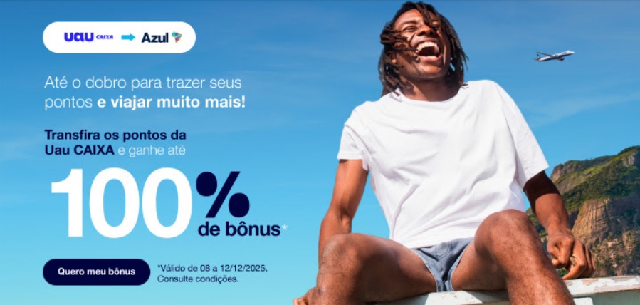 Último dia 12/12! Transfira os pontos Caixa UAU para Azul Fidelidade com até 100% de bônus